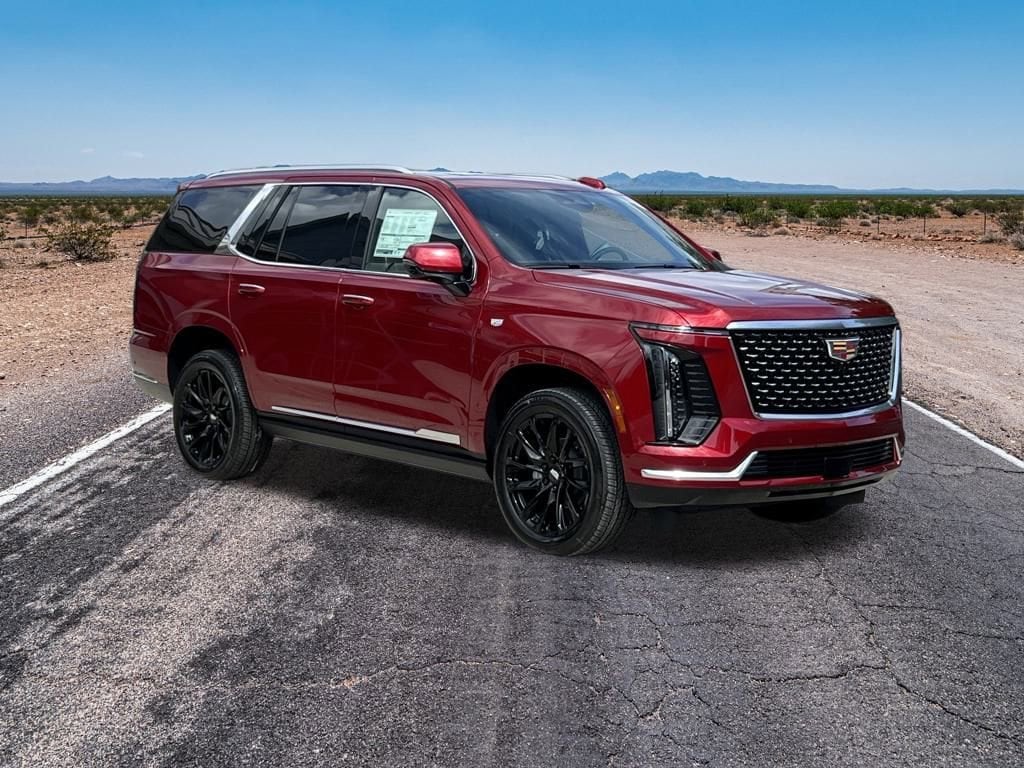 Radiant Red Tintcoat 2026 Cadillac Escalade Luxury 4WD 10-Speed Automatic with Overdrive 6.2L V8 4WD, Black Leather.