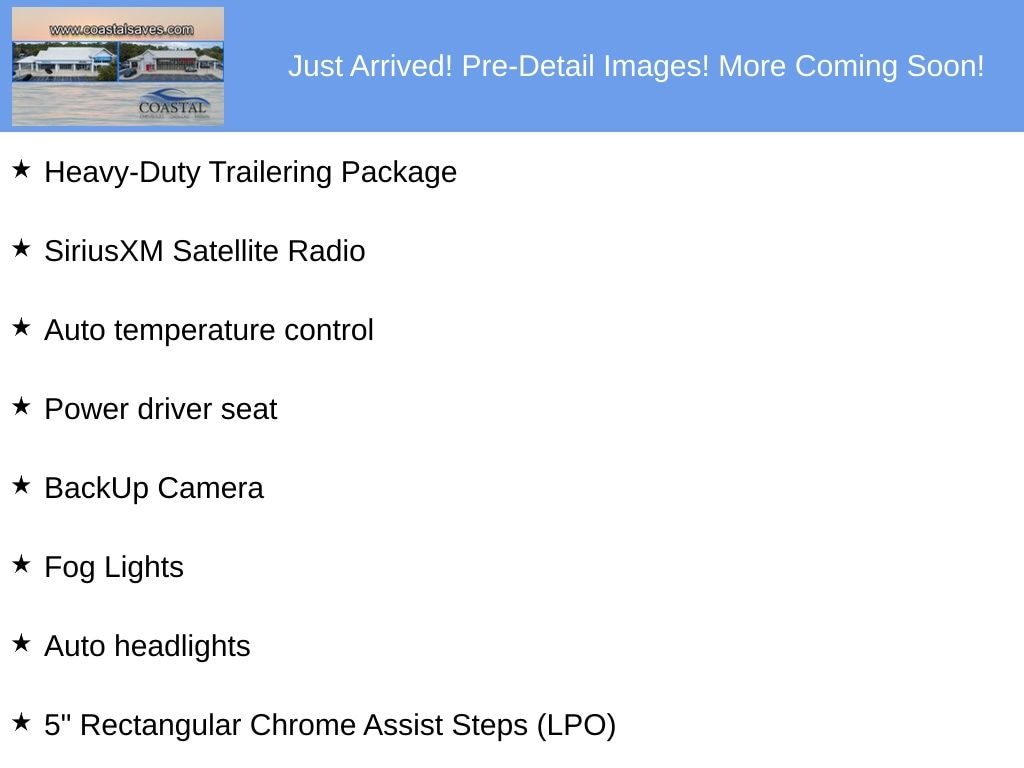 4WD, 3.42 Rear Axle Ratio, 5" Rectangular Chrome Assist Steps (LPO), Apple CarPlay, Auto headlights, Auto temperature control, BackUp Camera, Fog Lights, Heated Driver & Front Passenger Seats, Heavy-Duty Trailering Package, Power driver seat, Power passenger seat, SiriusXM Satellite Radio, Wheels: 17" x 8" Dark Argent Metallic Cast Alloy.