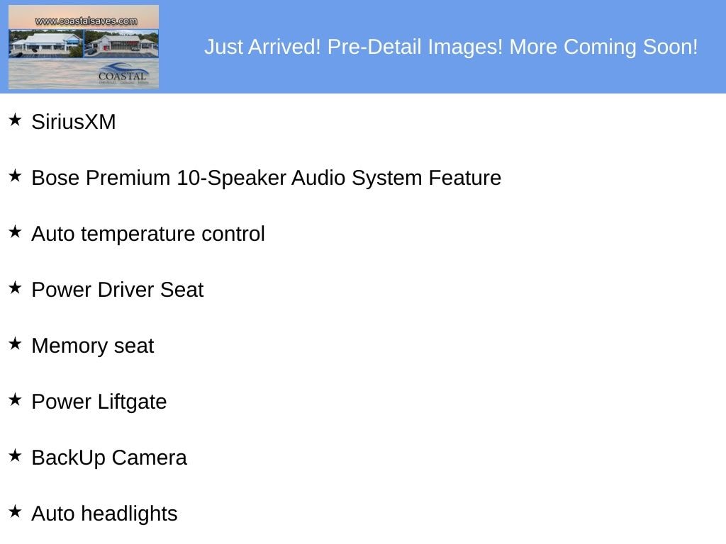 AWD, Apple CarPlay/Android Auto, Auto headlights, Auto temperature control, BackUp Camera, Bose Premium 10-Speaker Audio System Feature, Heated Driver & Front Passenger Seats, Heated steering wheel, Memory seat, Power Driver Seat, Power Liftgate, SiriusXM, Ventilated front seats.